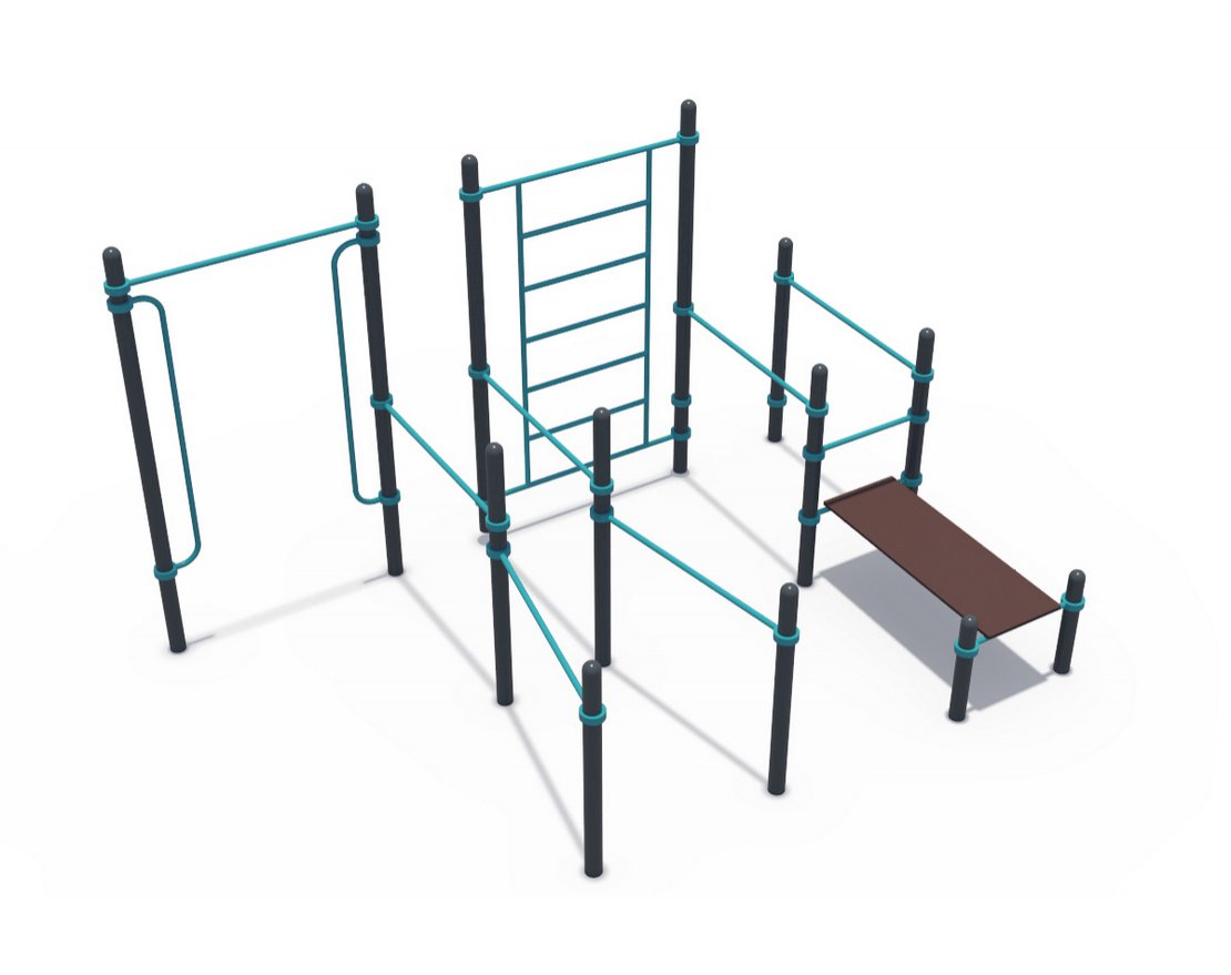 Площадка предназначена для детей от 5 лет. Её размеры составляют 411,7 см в длину, 279,7 см — в ширину и 250 см — в высоту. Вы можете выбрать один из цветов по таблице RAL, чтобы площадка гармонично вписалась в окружающую обстановку.