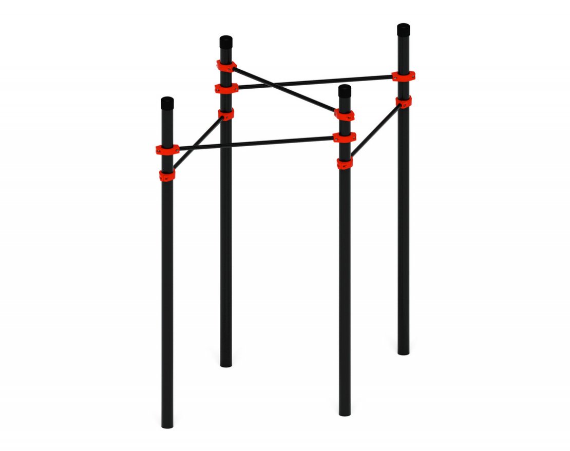 Комплекс состоит из четырёх опорных столбов высотой 260 сантиметров и пяти перекладин, которые крепятся хомутами к опорным стойкам на трёх уровнях: 250, 220 и 190 сантиметров от земли. Хомуты выполнены в виде разъёмных частей, соединённых винтами М10.