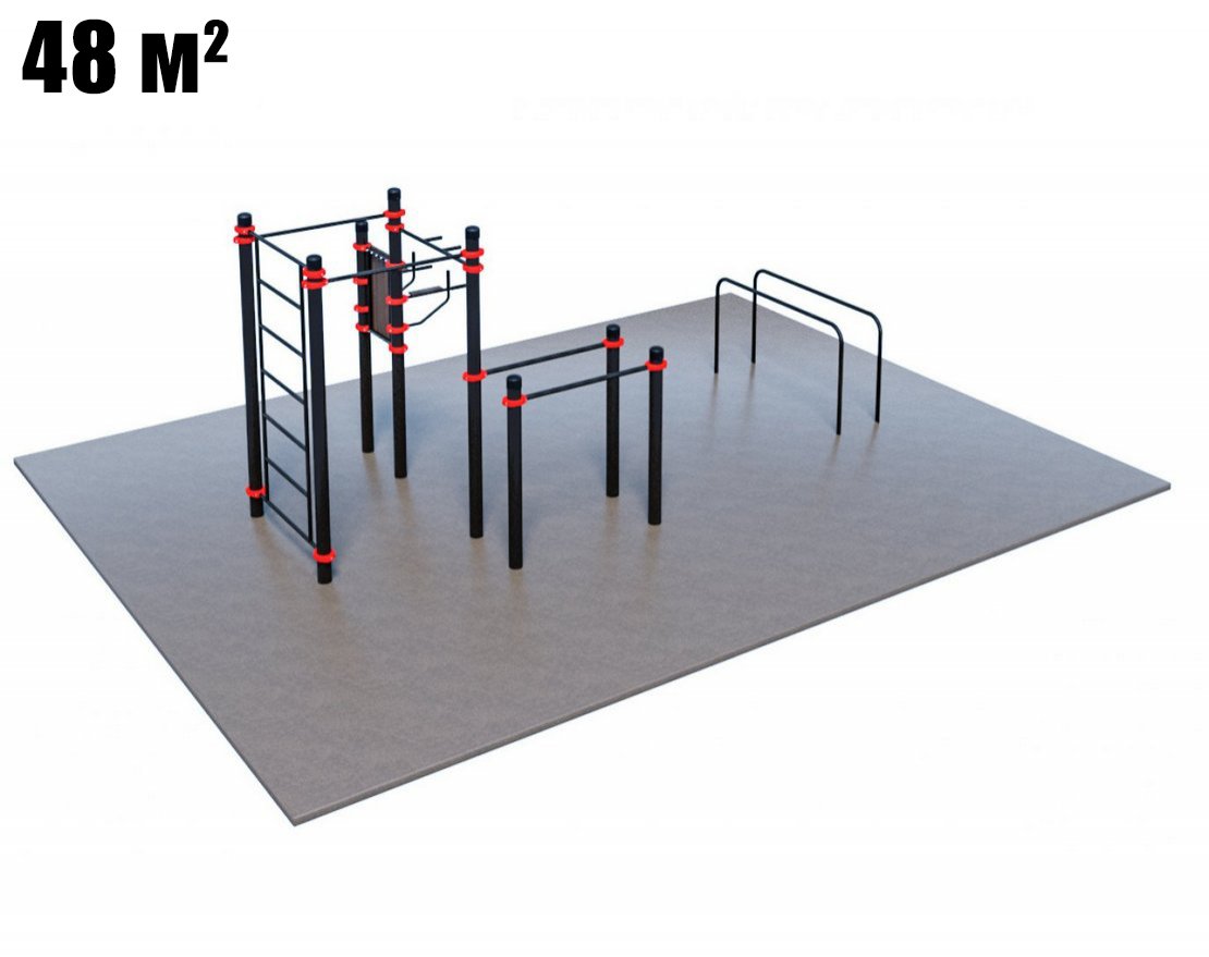 3. Удобство использования.** Площадка имеет размер 8 х 6 м и общую площадь 48 м², что позволяет разместить все необходимые снаряды и обеспечить достаточно пространства для занятий.
