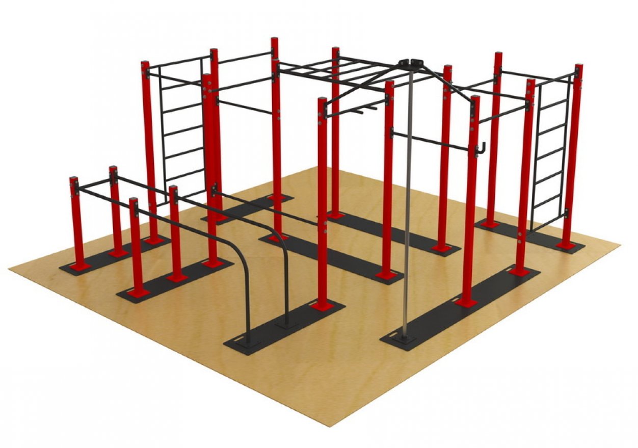Все элементы спортивного комплекса изготовлены из прочной стали и покрыты атмосферостойкой краской, что обеспечивает долгий срок службы даже при использовании на открытом воздухе.