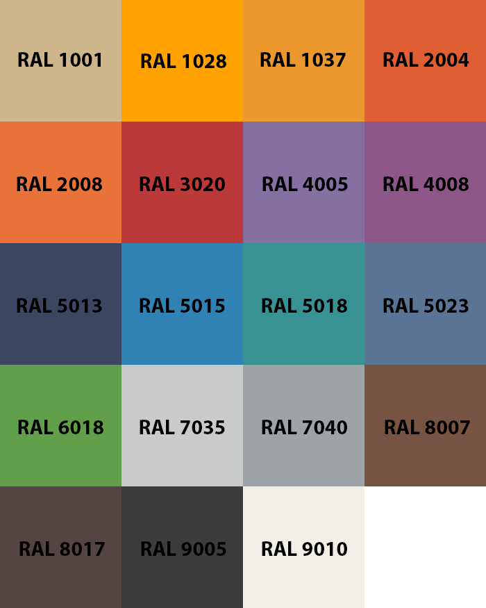 Можно изготовить оборудование без удорожания в следующих оттенках по таблице RAL: