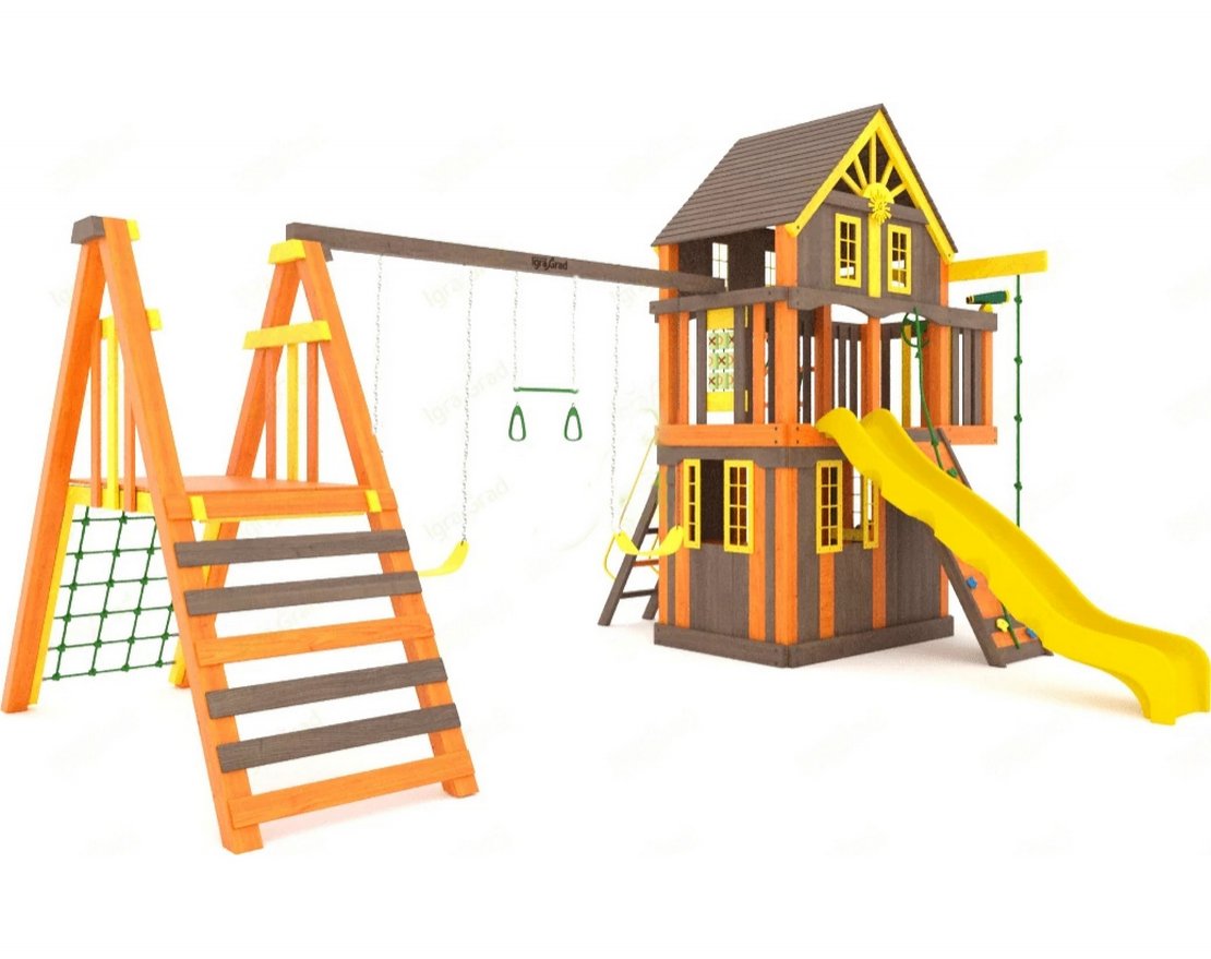 Все элементы игрового комплекса изготовлены из высококачественных материалов и соответствуют стандартам безопасности. Игровой комплекс «Шато» станет отличным местом для игр и развития детей на свежем воздухе.