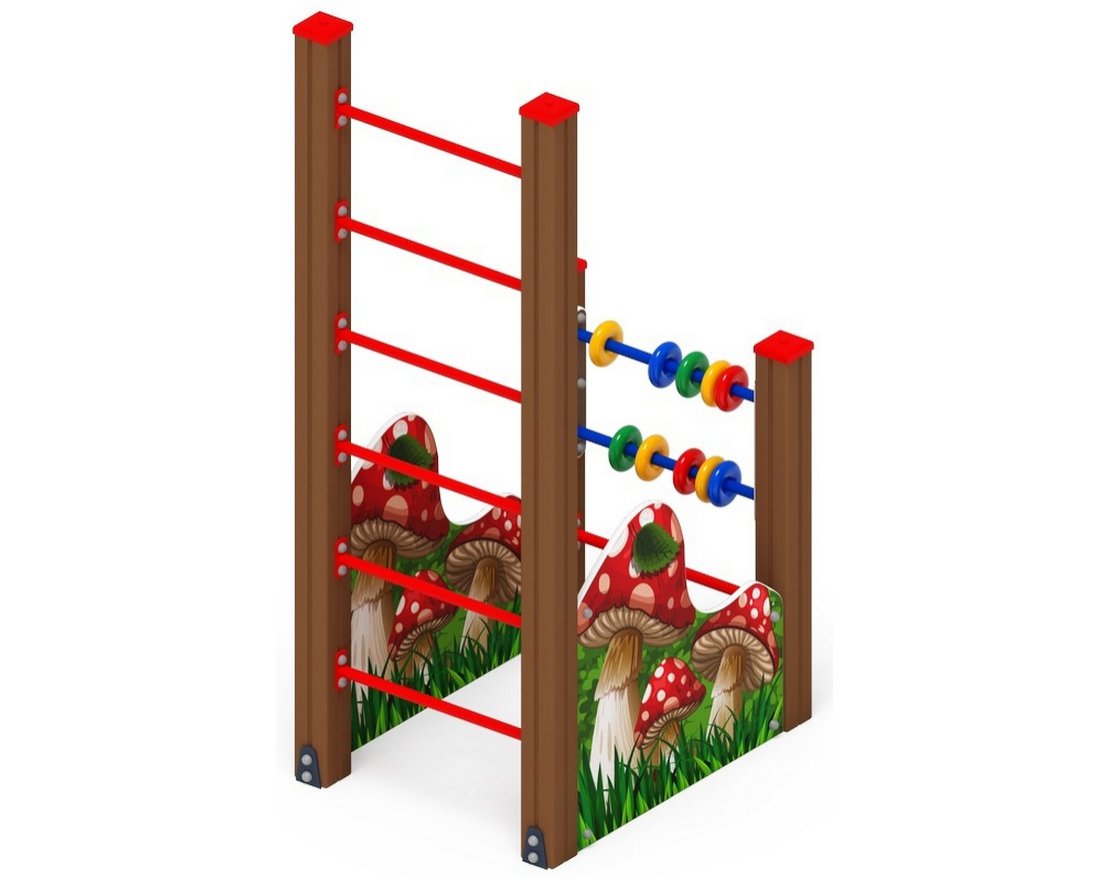 Счеты состоят из двух металлических перемычек из трубы диаметром 22 мм и набора пластмассовых колец, окрашенных в разные цвета, в комплекте 4 желтых, 2 красных, 2 синих, 2 зеленых, в состав счет входит два крепежных элемента из 24 мм влагостойкой фанеры окрашенной в бежевый цвет.