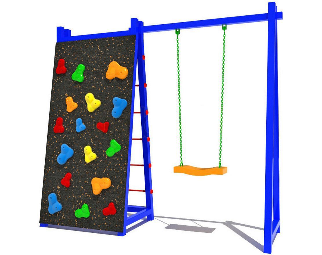 2. Разнообразие активностей. Комплекс предлагает разнообразные активности для развития детей: лесенка-клеточка для малышей, стена для скалолазания и качели.