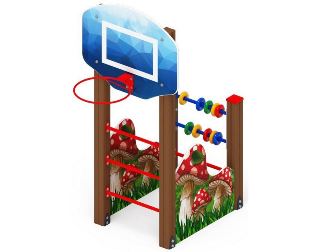 Борт выполнен из березовой фанеры толщиной 18мм, и габаритами 820х800. Фанера имеет тщательную обработку торцов и окраску желтого цвета. Стилизован под гриб мухомор.