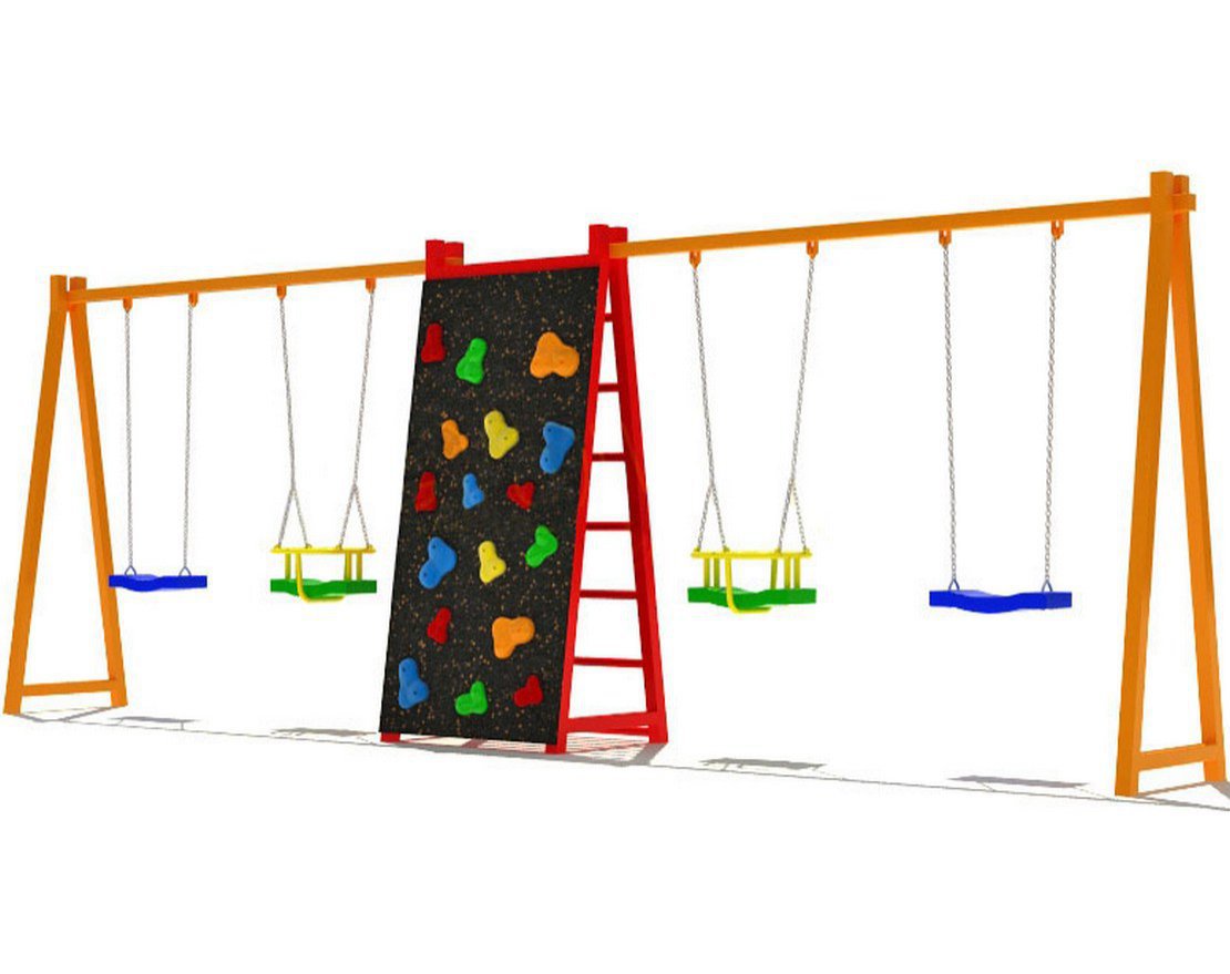 Качели в сочетании со спортивным комплексом – идеальное решение детской площадки в любом дворе. Сразу четыре качели, включая две детских с защитными сидениями, сделают ваш двор предметом зависти всего города. Дети будут мчаться во двор с удовольствием, имея возможность выбрать игру себе по вкусу, от качелей до настоящих приключений скалолаза.