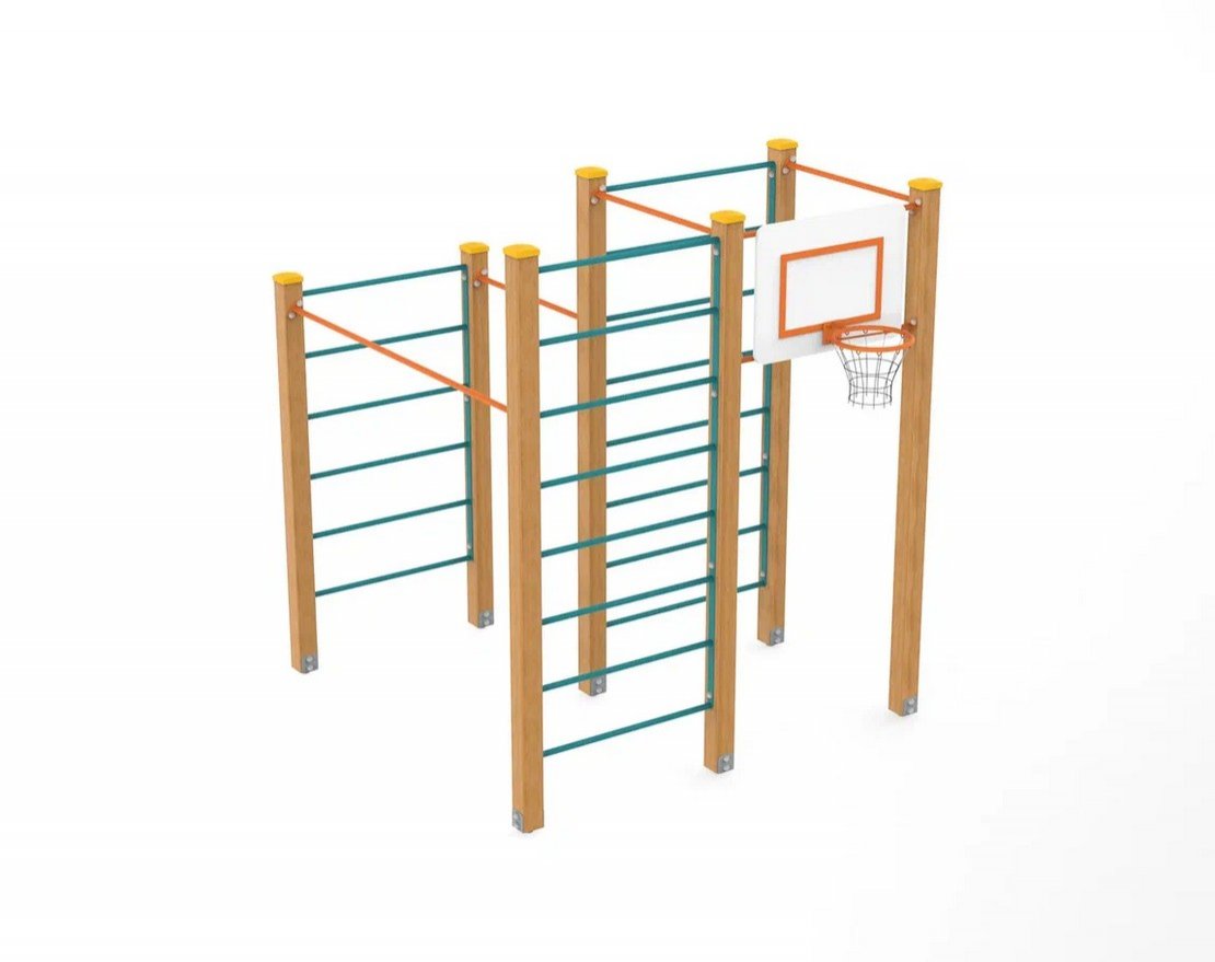 - Баскетбольное кольцо: Панель выполнена из влагостойкой фанеры ФСФ. Кромки фанеры шлифованы и закруглены. Баскетбольное кольцо из круглой трубы диаметром 21 мм.
