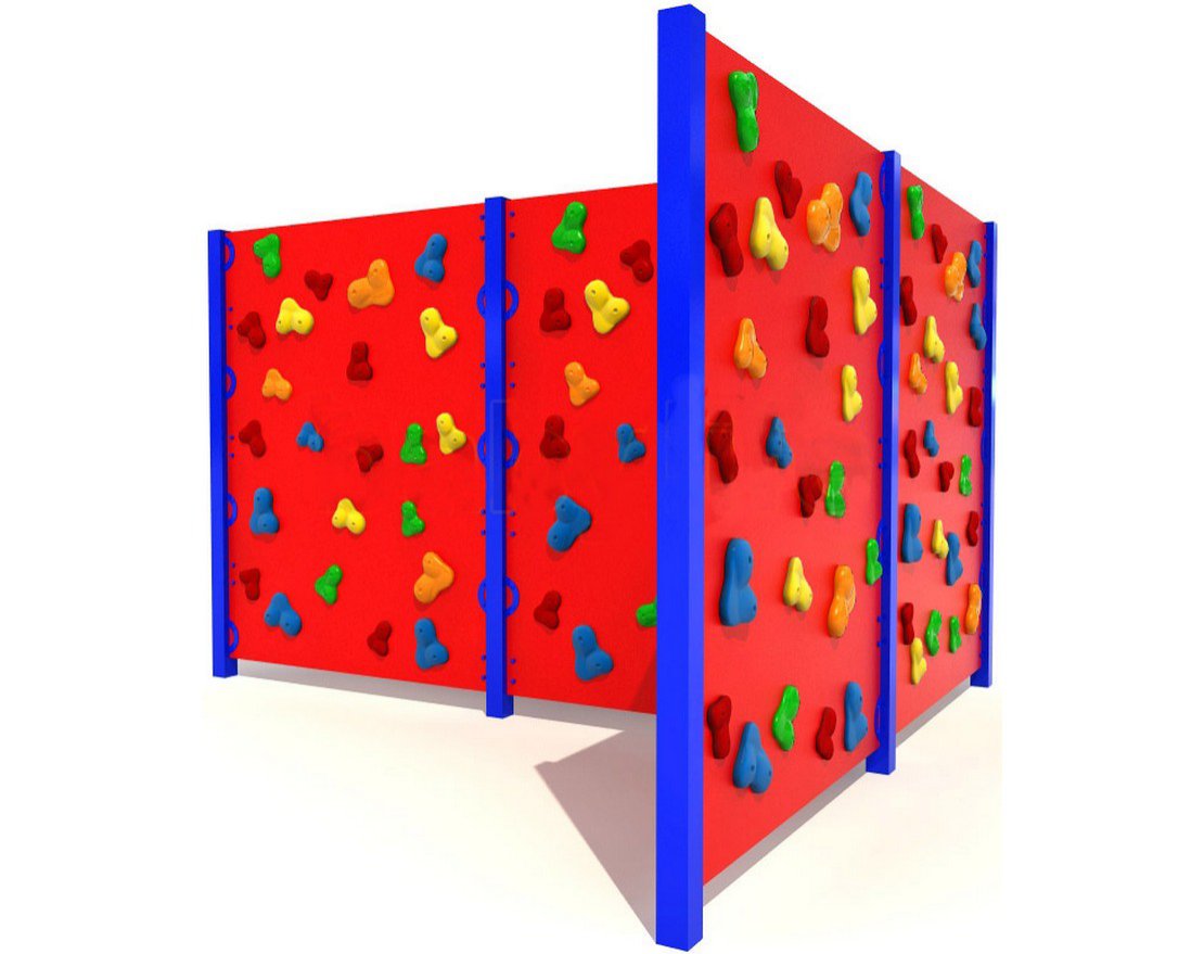 Г-образная форма позволяет установить скалодром даже на небольшой площадке. Яркие цвета и надёжные зацепы делают его безопасным и привлекательным для детей разных возрастов.