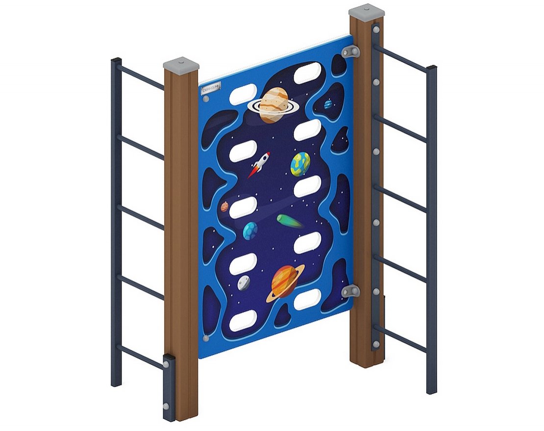 Скалолаз состоит из щита из влагостойкой фанеры, толщиной 18 мм. Размер щита: 1180х800 мм, с прорезями.