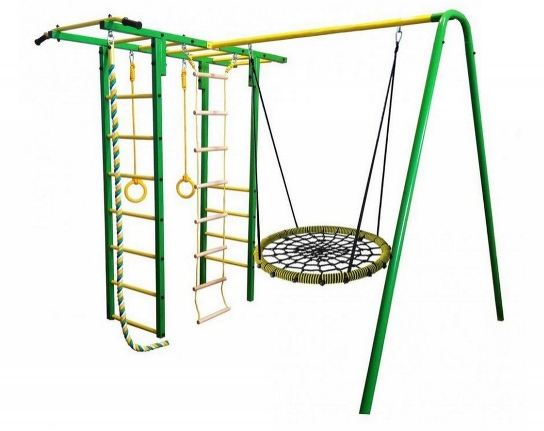 Стойки бетонируются, что обеспечивает надёжную фиксацию комплекса на газоне. Допустимая нагрузка на комплекс составляет 100 килограмм.