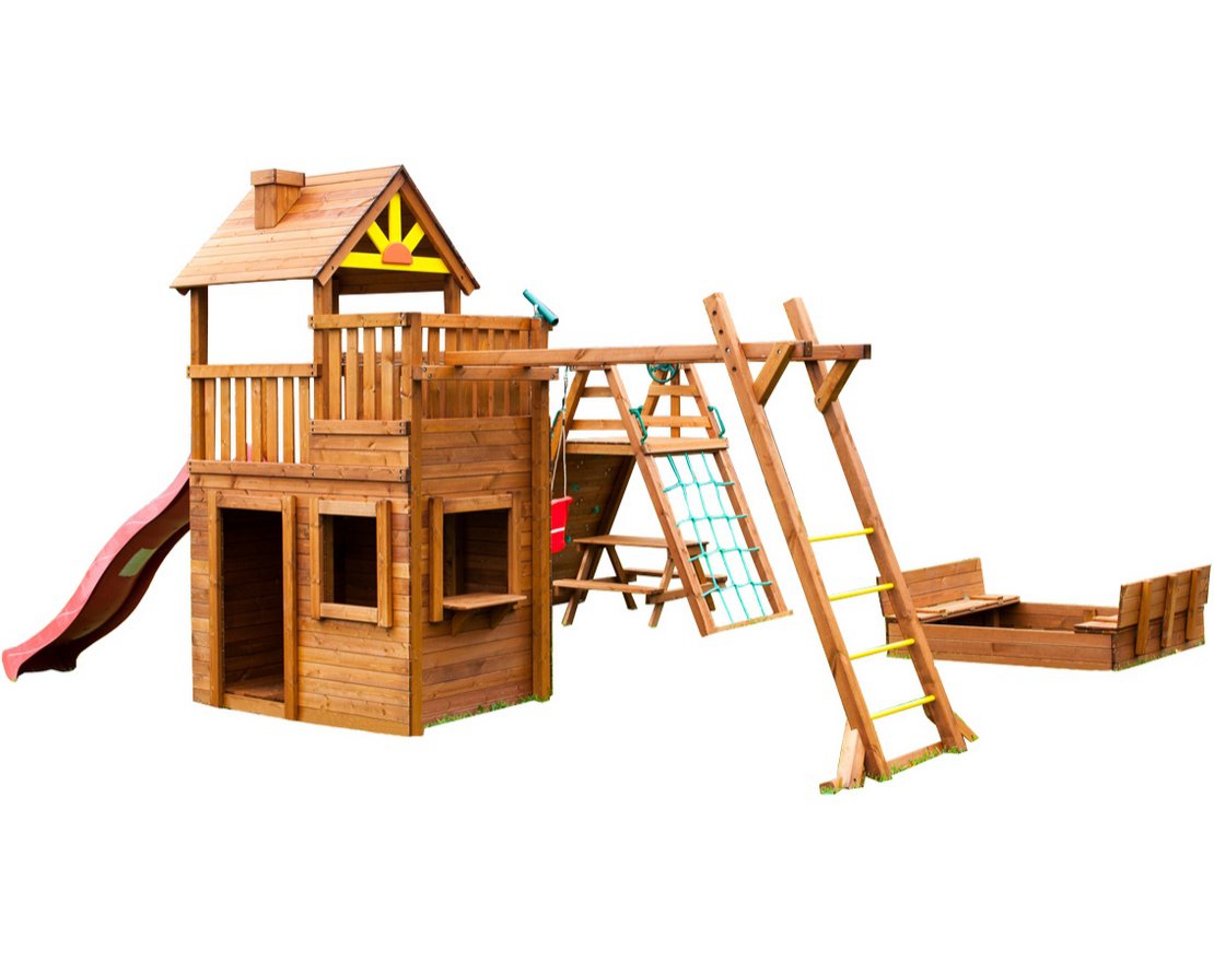 Городок изготовлен из высококачественной архангельской сосны, которая обладает высокой плотностью и прочностью. Все элементы городка тщательно обработаны и безопасны для детей.