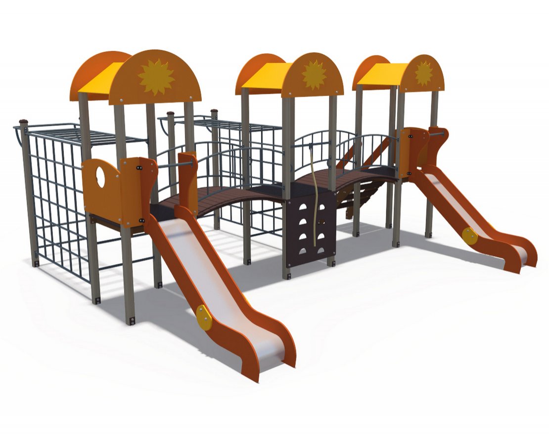 • В комплект входит: канат, турник, рукоход, горка, скалодром, лестница