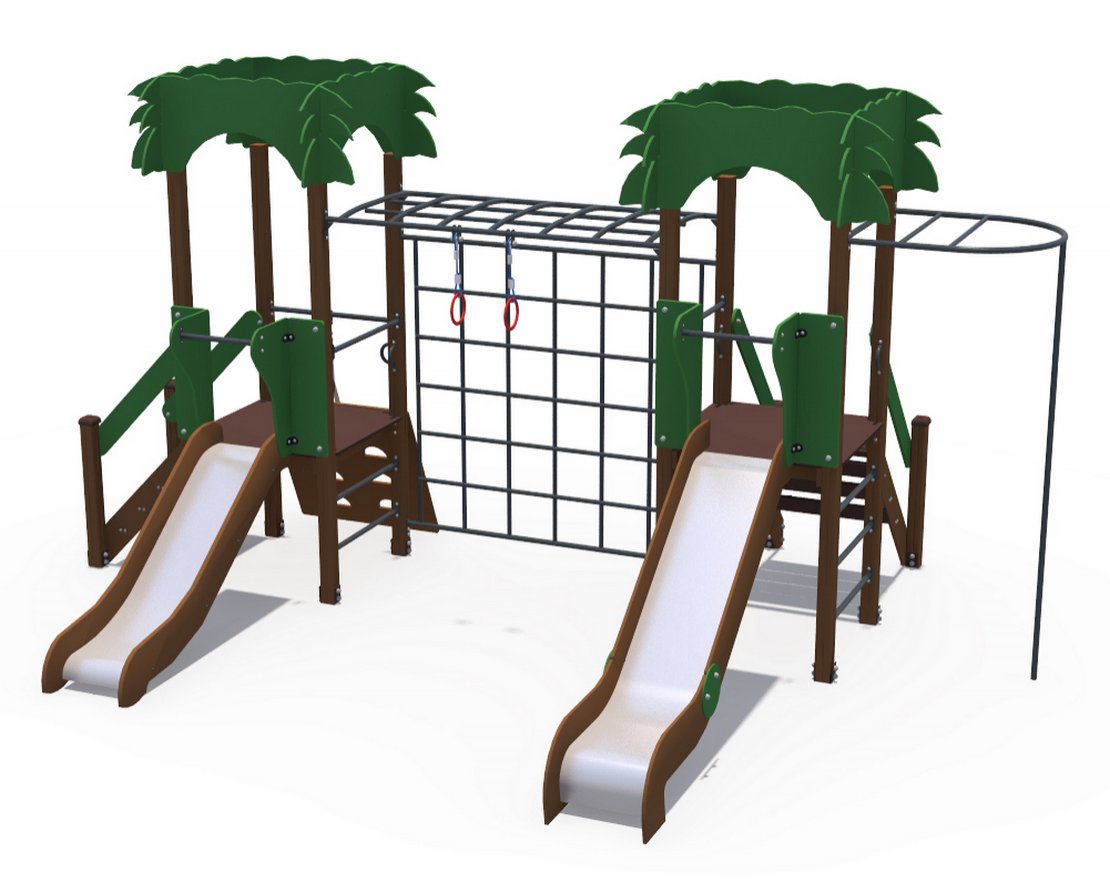 Подходит для детей от 1 до 10 лет. Изготовлен из качественных металлов и древесины, соответствует стандартам безопасности. Оборудование предназначено для установки на улице и может быть изготовлено в различных цветах по каталогу RAL.
