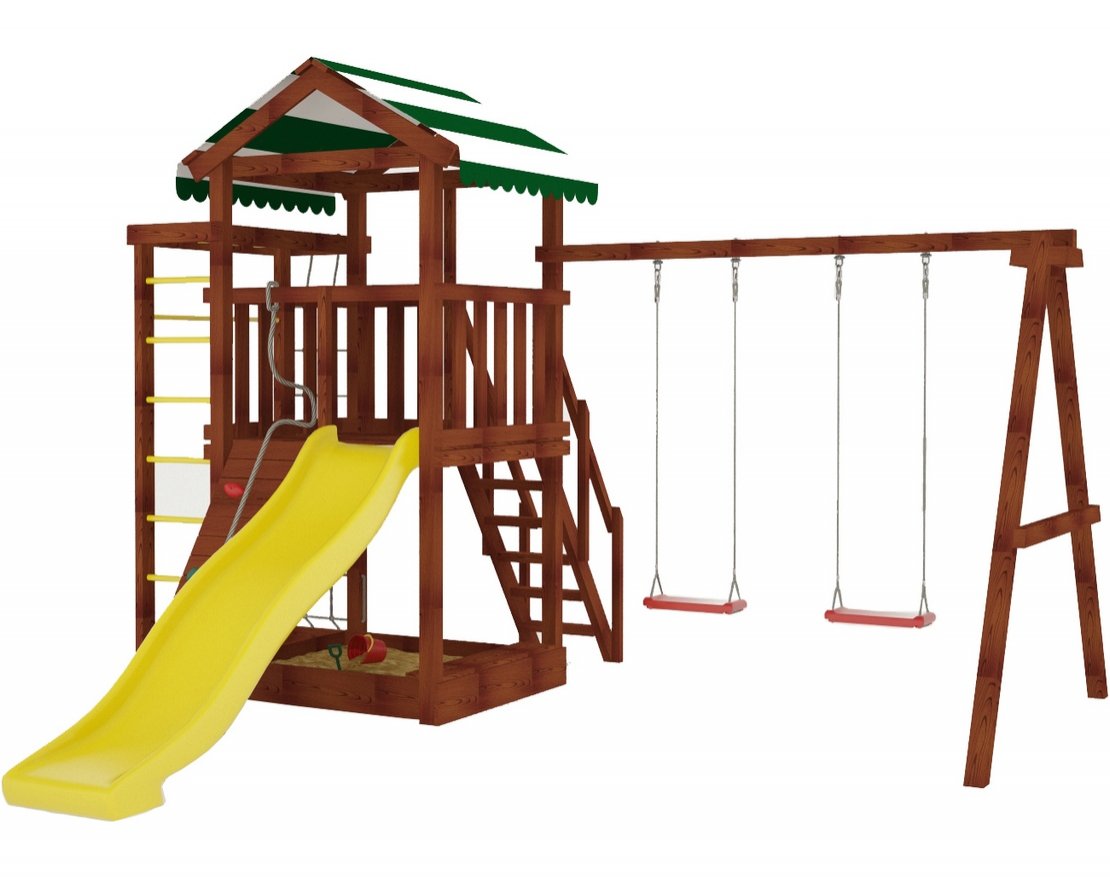 - Безопасность: все элементы конструкции выполнены из качественных материалов и соответствуют стандартам ГОСТ. Все крепежи и болтовые соединения закрыты заглушками для безопасности детей.