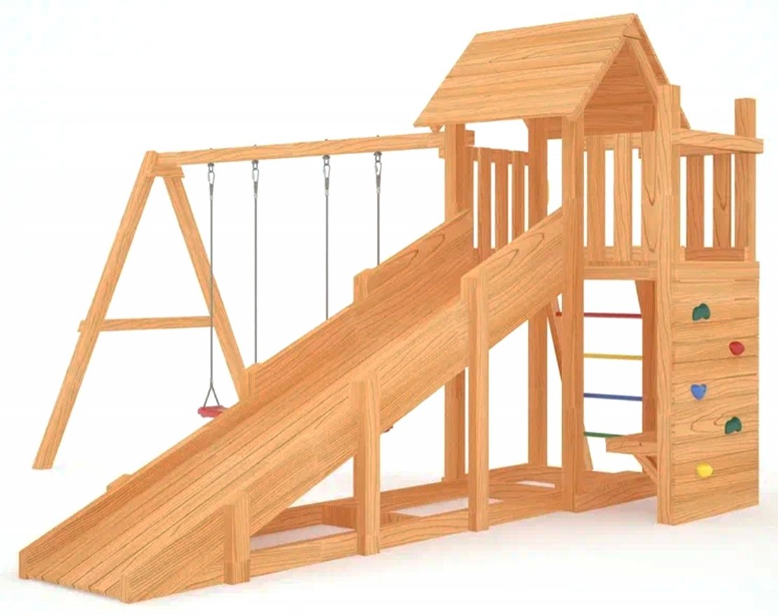 Савушка Мастер-9 (4 Сезона) — это всепогодная игровая площадка, которая не требует разборки на зиму и сборки весной. Конструкция площадки соответствует ГОСТ, а её геометрия сохраняет чёткие линии благодаря использованию натурального материала — клеёного бруса, прошедшего сертификацию. Площадка безопасна: крепежные элементы надёжно скрыты под специальными колпачками, качели оснащены подвесами, выполненными по ГОСТ, а спортивное оборудование из Бельгии имеет дополнительный запас прочности, что обеспечивает безопасность детей во время игр.