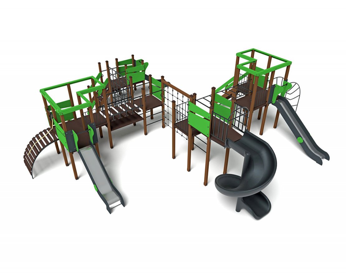 • В комплект входит: канат, гладиаторская сетка, горка, скалодром, лестница