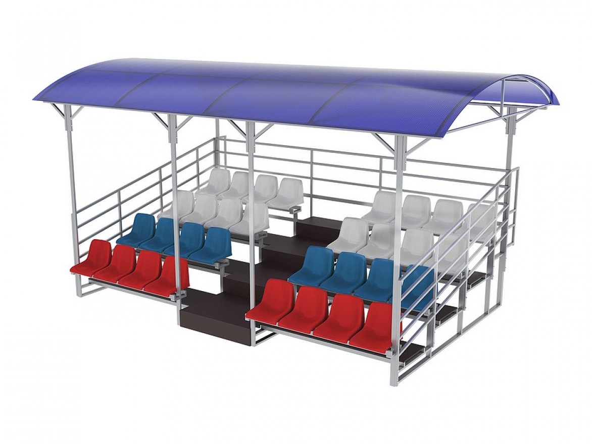 Посадочное место: трибуны комплектуются пластиковыми креслами со спинкой или ламинированной влагостойкой фанерой, обеспечивая удобство для зрителей. Также возможно оснащение навесом из поликарбоната или профнастила для защиты от непогоды.
