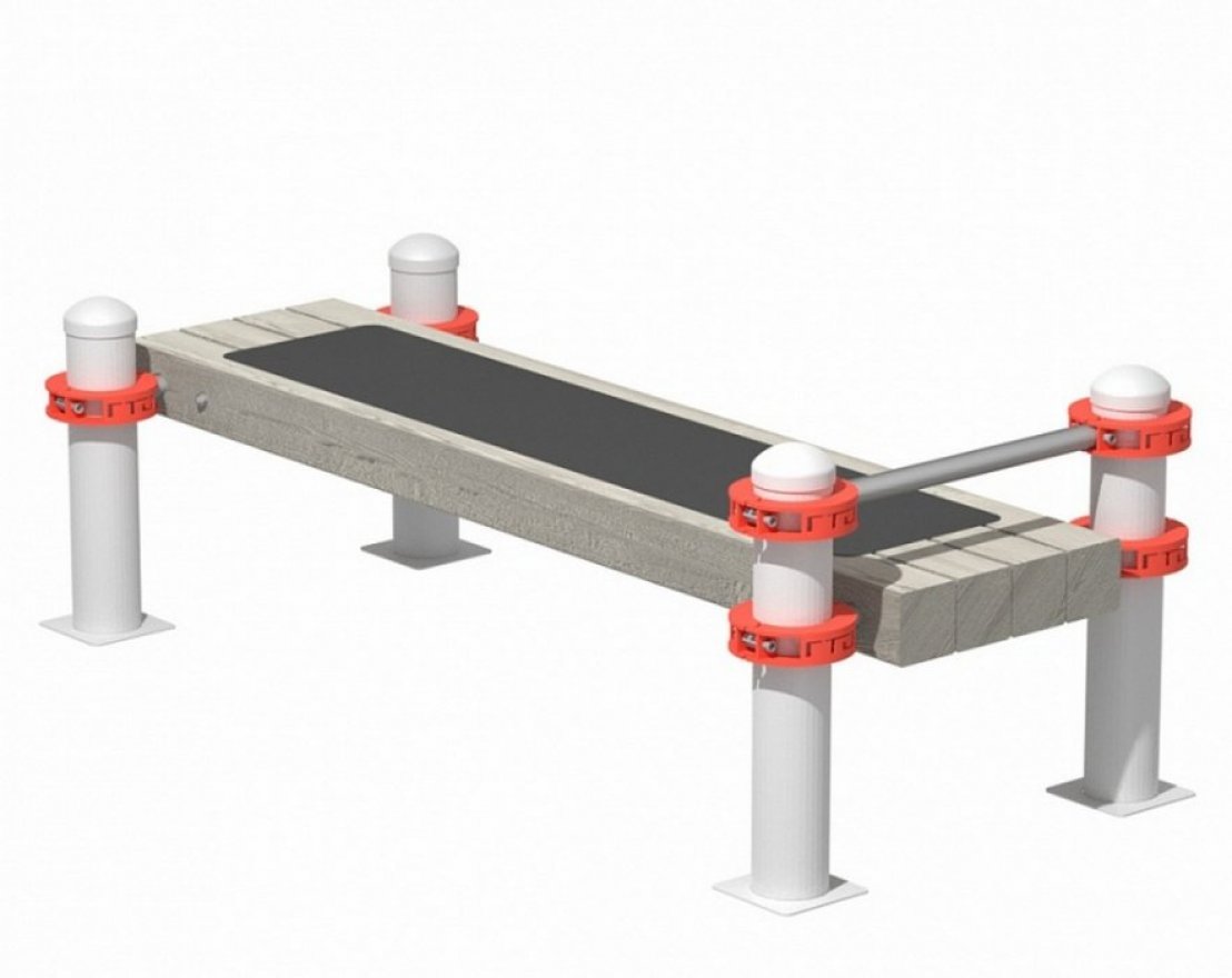 Прочная горизонтальная скамья изготовлена из стального профиля с цинковым покрытием, что обеспечивает её долговечность и устойчивость к внешним воздействиям. Брус из влагостойкой древесины также обладает высокой прочностью и не ограничен сроком службы.