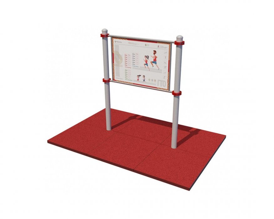 Уличная информационная стойка для установки во дворе — это цельная конструкция из металлических труб, которая предназначена для установки на открытых спортплощадках. Стойка используется для размещения информации о возрастных категориях, этапах и нормативах спортивных испытаний.