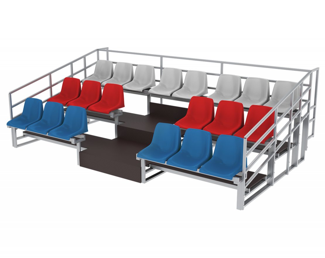 Посадочное место может быть оснащено пластиковыми креслам со спинкой или без, либо ламинированной фанерой, в зависимости от предпочтений заказчика. Трибуна также может быть дополнена навесом из поликарбоната или профнастила, а также защитными ограждениями по бокам или по всему периметру, чтобы создать комфортные условия для зрителей. По желанию клиента трибуна может иметь высоту до 1.5 метров над уровнем площадки.