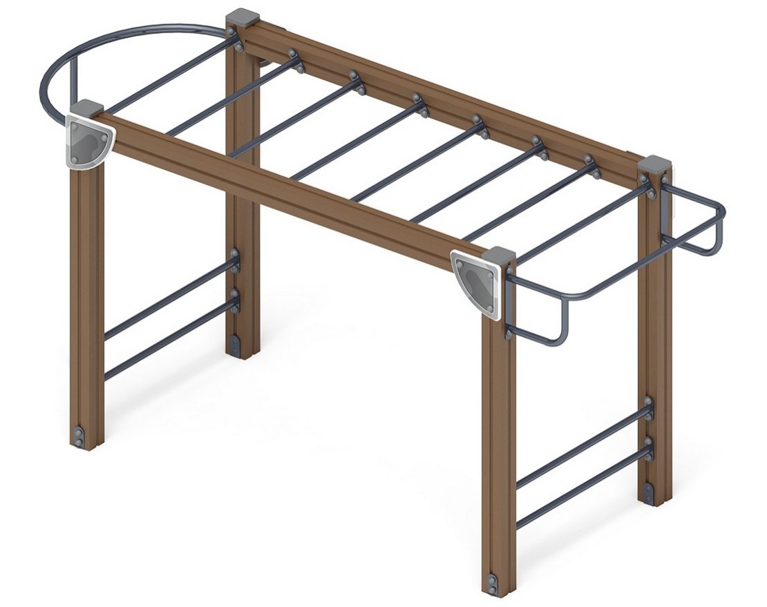 Этот уличный спортивный комплекс предназначен для детей в возрасте от 3-х до 6-ти лет. Комплекс обеспечивает физическое развитие ребёнка, развивает координацию движений, помогает преодолеть страх высоты, тренирует ловкость и смелость. Также комплекс способствует развитию чувства коллективизма во время массовых игр.