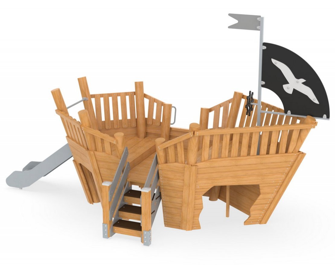 Игровой комплекс «Сокровище 785.08» предназначен для установки на уличных площадках, во дворах, в парках и других местах, где требуется организовать детский досуг и физическое развитие детей. Это сборно-разборная конструкция, которая изготовлена из дерева, оснащена горкой из нержавеющей стали и соответствует всем стандартам качества.