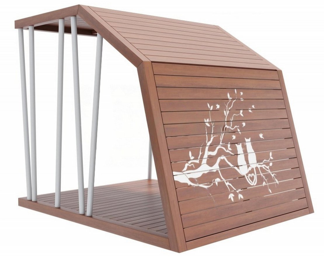 Крыша, стенка и пол: Брус из хвойных пород древесины. Покрытие - атмосферостойкая лессирующая акриловая пропитка с лаком. Стандартные цвета: Палисандр, Махагон, Тик.