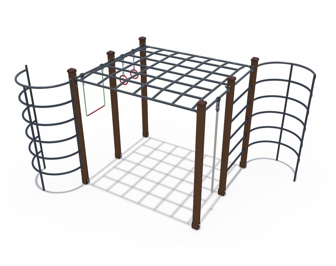 Представляем вам уличную конструкцию, которая может стать отличным местом для активного отдыха и развития детей от 7-ми лет и старше. Конструкция изготовлена из высококачественных материалов: стали марки Ст3 и клеёного бруса. Она не только выглядит привлекательно, но и отличается прочностью и долговечностью.