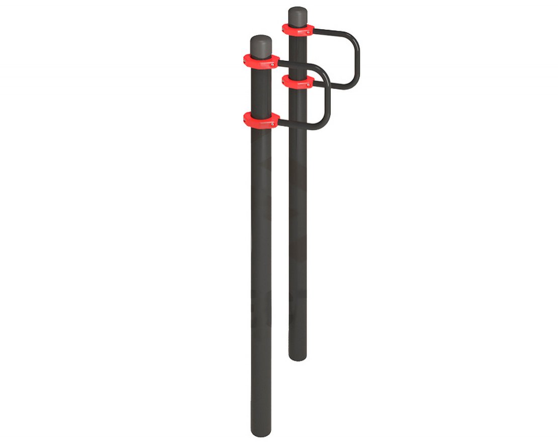 Рукоятки для подтягиваний изогнуты под углом 90° и симметрично расположены относительно опорных стоек. Они крепятся к стойкам с помощью хомутов, расположенных на высоте 1800 миллиметров в верхней части комплекса и 1420 миллиметров — в нижней. Общая высота конструкции составляет 2000