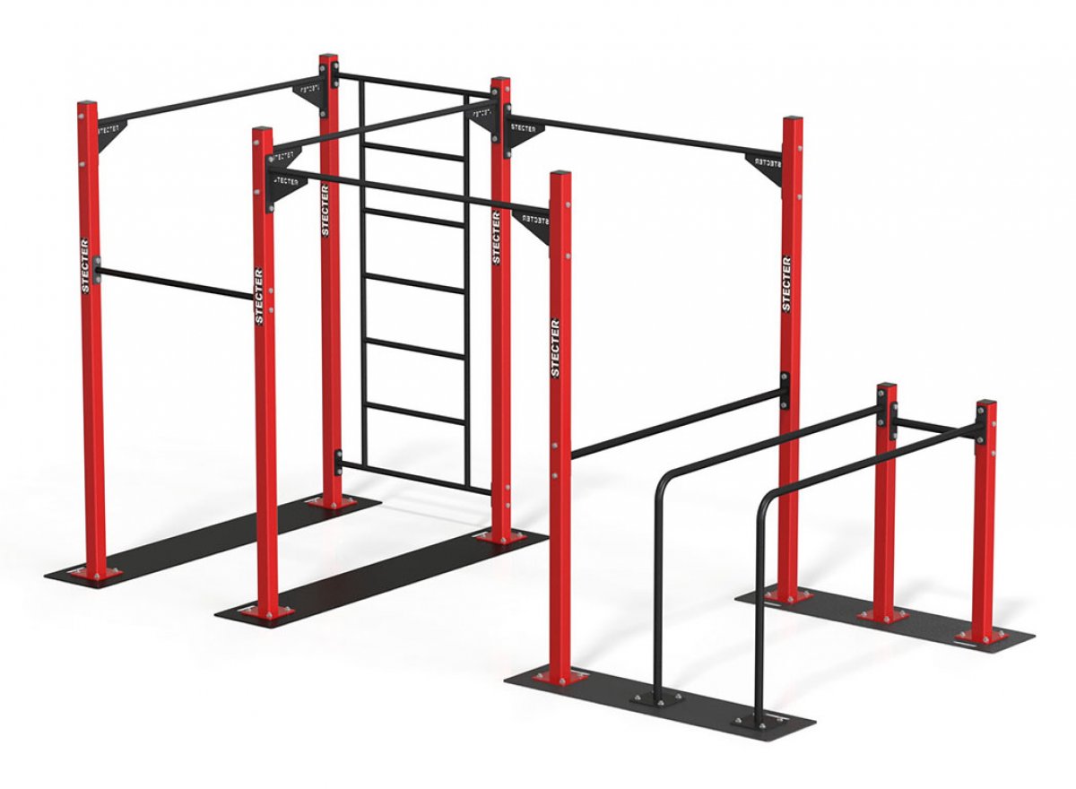 Все элементы спортивного комплекса покрыты атмосферостойким порошковым покрытием, которое защищает металл от коррозии и механических повреждений.