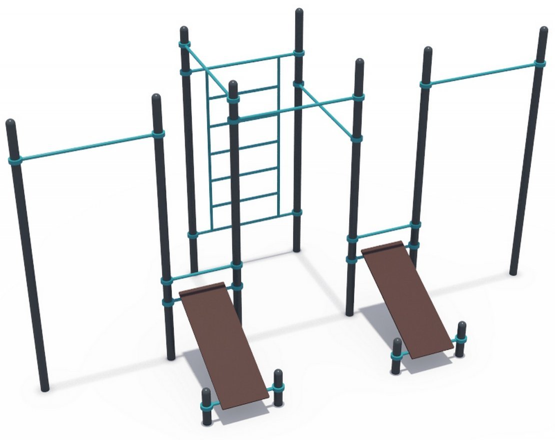 Этот спортивный комплекс разработан для подростков и взрослых, чей рост и физическая подготовка позволяют выполнять упражнения на высоте. Комплекс состоит из вертикальных опорных столбов, шведской лестницы, турников и других элементов, которые обеспечивают разнообразные возможности для тренировок.