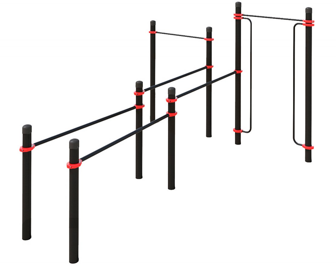 Комплекс включает в себя восемь опорных столбов, которые обеспечивают надёжную основу для занятий. Опорные столбы доступны в различных вариантах высоты: 2 штуки по 2 550 миллиметров, 2 штуки — по 2 000