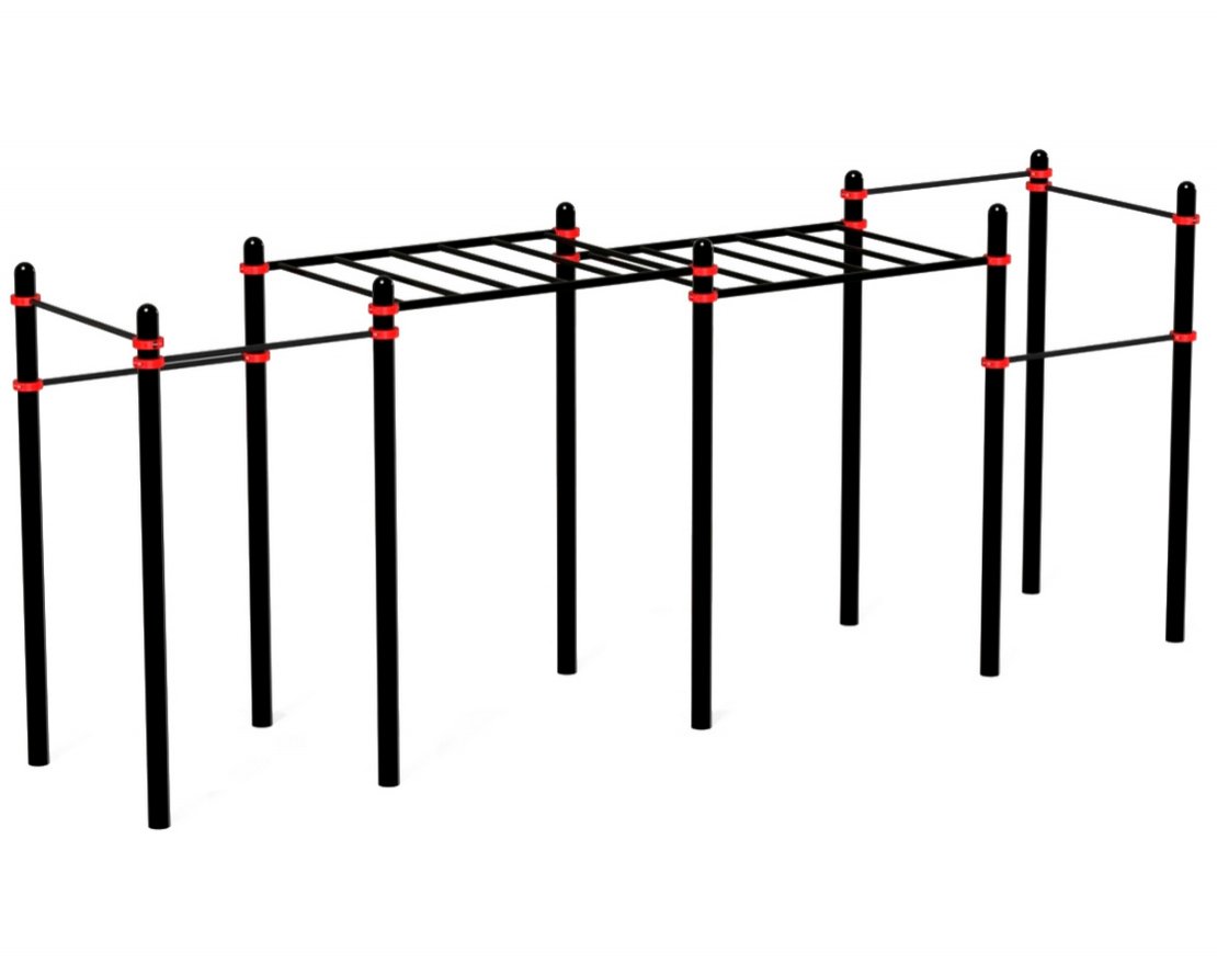 Комплекс с рукоходом и турниками для воркаут-тренировок — это функциональная спортивная площадка, которая может быть установлена во дворе многоквартирного дома, на школьной спортивной площадке или на территории парка.