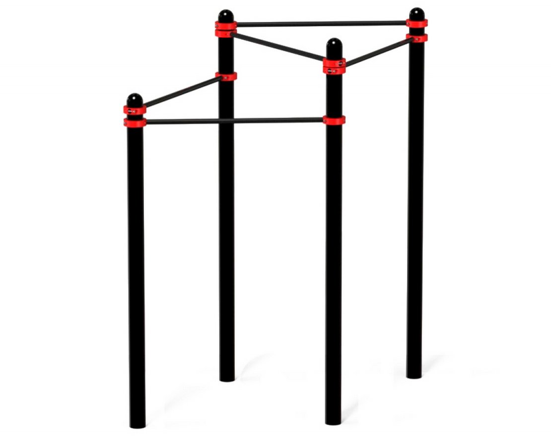 Тренажёры оснащены перекладинами, которые могут быть закреплены на разной высоте в зависимости от ваших потребностей. Это позволяет использовать их как для выполнения базовых упражнений, так и для более сложных элементов.