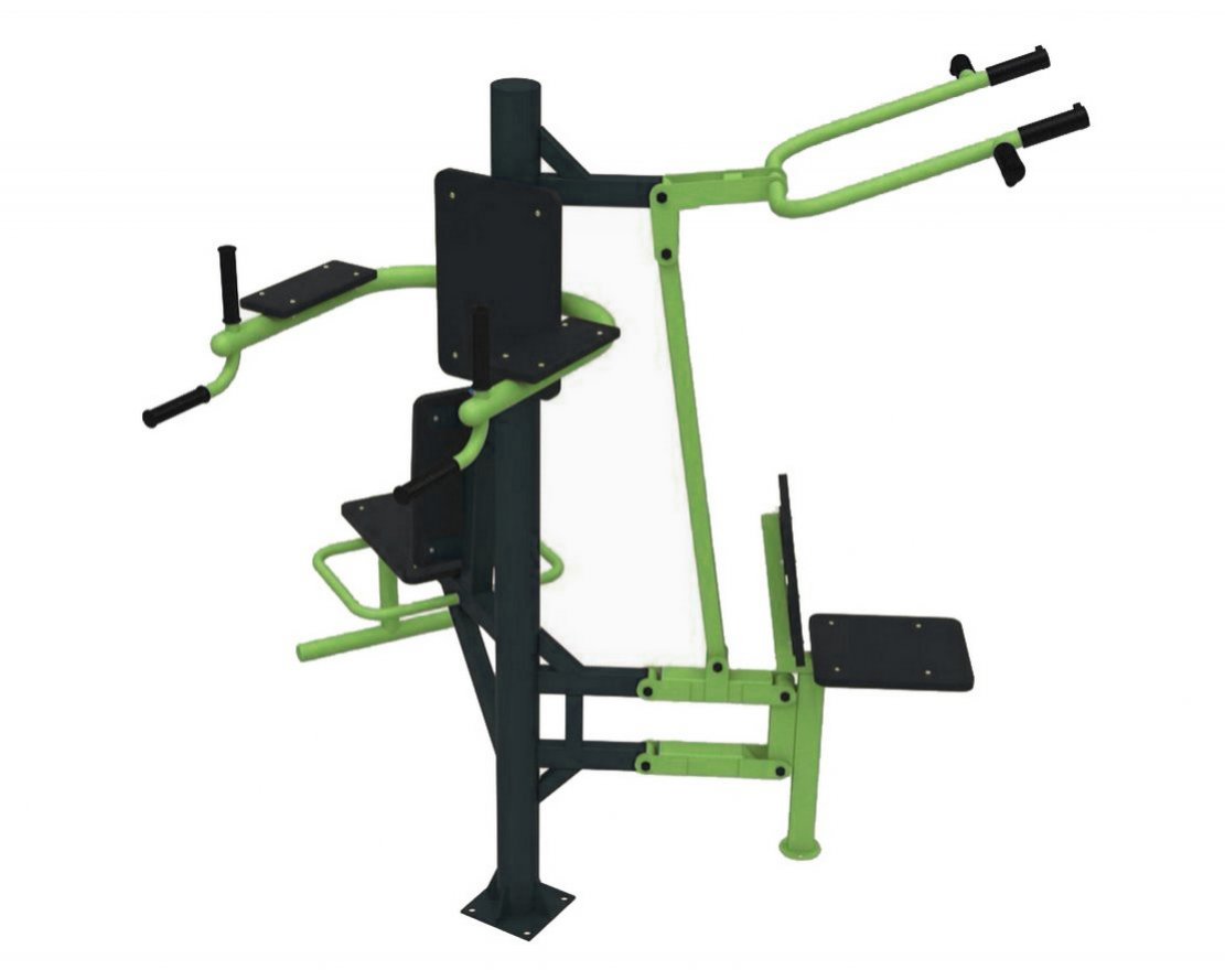 Уличный тренажёр «3-сторонний» — это универсальный спортивный тренажёр, который может использоваться как для воркаута, так и для общефизической тренировки. Он состоит из брусьев, верхней тяги и поднимания ног и может быть установлен как отдельно, так и на спортивной площадке.