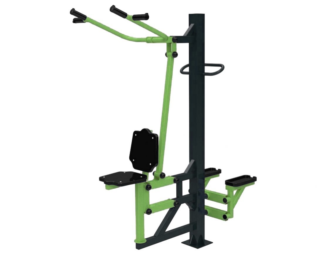 Тренажёр «Степпер» и тренажёр «Вертикальная тяга» — это уличные спортивные тренажёры, предназначенные для укрепления различных групп мышц и тренировки сердечно-сосудистой и дыхательной систем. Они изготовлены из прочной стали и оснащены подвижной рычажной системой, что обеспечивает их надёжность и долговечность.