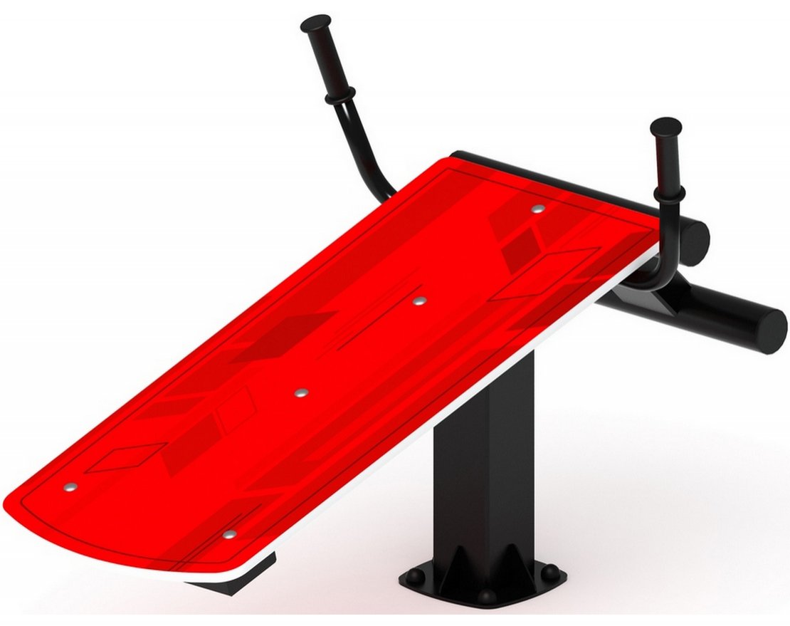 Спортивная площадка с лавочкой для пресса выполнена в красно-чёрной цветовой гамме. Тренажёр станет ярким акцентом на площадке и привлечёт внимание детей и взрослых.