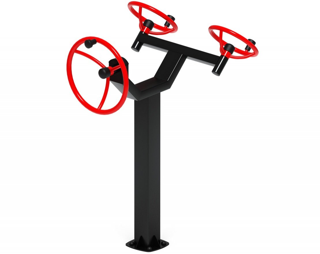 Этот тренажёр выполнен в эффектном красном цвете с контрастными чёрными элементами. Он станет ярким акцентом на спортивной площадке и привлечёт внимание прохожих. Сочетание красного и чёрного создаёт динамичный и энергичный образ, который будет заряжать позитивом всех вокруг.