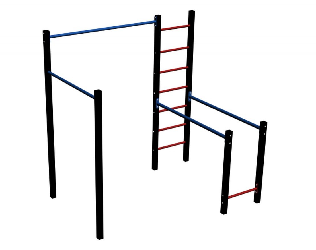Workout w140 — это многофункциональный уличный спортивный комплекс, который можно установить как на даче, так и на придомовой территории. Комплекс включает в себя несколько снарядов: два турника, брусья и шведскую стенку.
