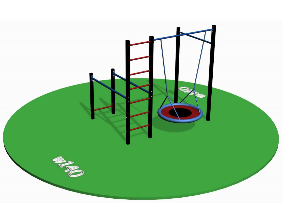 Workout w140 — это многофункциональный уличный спортивный комплекс, который можно установить как на даче, так и на придомовой территории. Комплекс включает в себя несколько снарядов: турник, качели-гнездо, брусья и шведскую стенку.