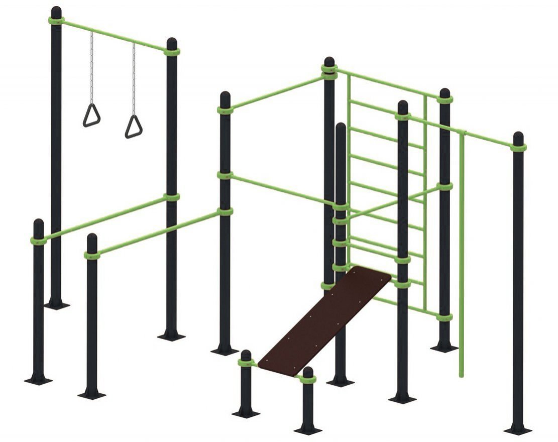 Элементы комплекса регулируются по высоте благодаря хомутам. Также возможно менять их расположение в плане за счёт круглых труб. Комплекс доступен в различных цветах, что позволяет ему вписаться в дизайн загородных домов, дачных участков, школ и дворовых площадок.